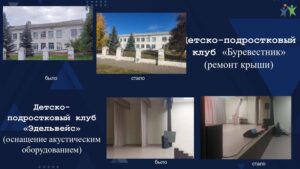 В Детско-подростковом клубе «Буревестник» отремонтировали крышу. В гимназии №3 выполнили текущий ремонт, в гимназии №4 заменили окна и двери, в Детско-подростковом клубе «Эдельвейс» установили новое акустическое оборудование для актового зала. В детском саду №59 обустроили теневые навесы.
