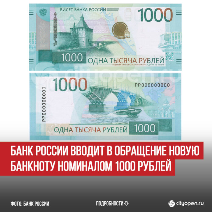 Банк России сообщил, что с 26 декабря вводится в обращение модернизированная банкнота номиналом 1000 рублей. Купюра представлена в обновленном дизайне, посвященном Нижнему Новгороду и Приволжскому федеральному округу. Также банкнота имеет усиленный защитный комплекс.