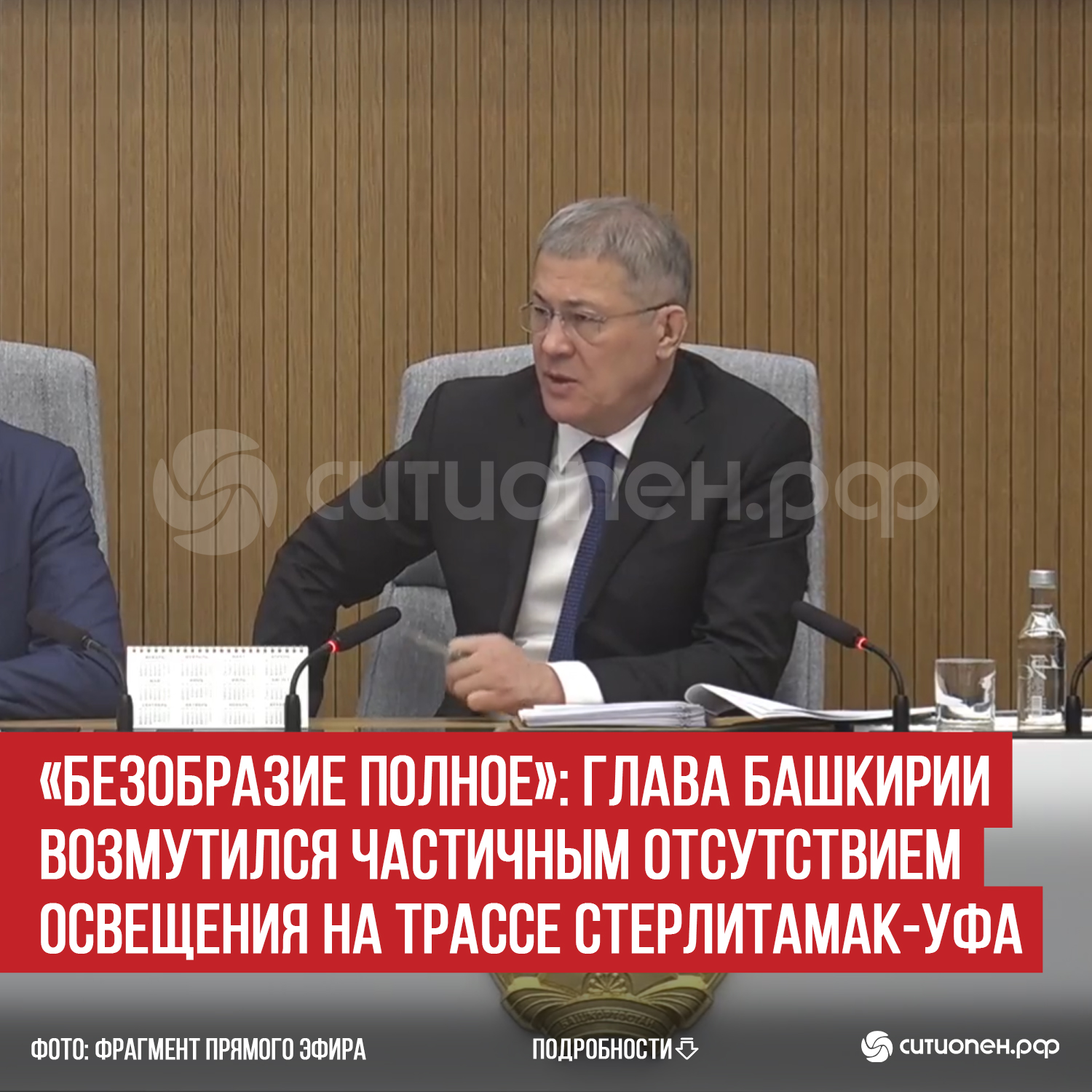 «Влупили туда денег. Вся трасса должна быть освещенной. Хуже нет, когда пять километров проехал, и опять трасса темная. Безобразие полное!.. Мне в прокуратуру начать обращаться? Или позвонить министру и сказать: «Наведите порядок здесь, пожалуйста», – сказал Радий Хабиров.