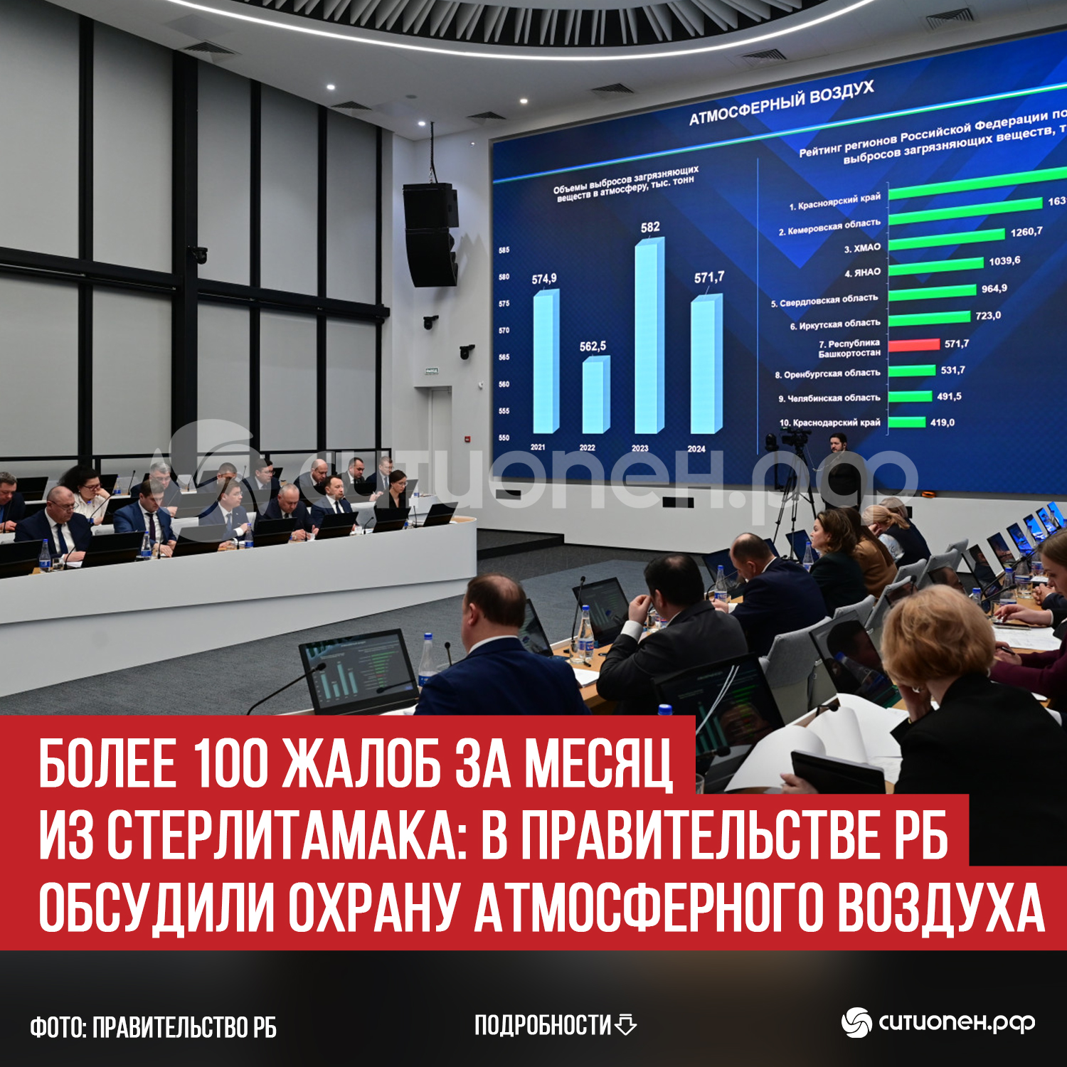 В Правительстве Башкирии прошло совещание по вопросам охраны атмосферного воздуха в Стерлитамаке, Салавате и Уфе. Премьер-министр РБ Андрей Назаров отметил, что республика стабильно занимает лидирующие позиции по выбросам загрязняющих веществ в атмосферу в ПФО, что связано с деятельностью предприятий нефтеперерабатывающей и нефтехимической отрасли, функционирующих в указанных городах.
