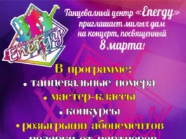 Танцевальный центр “Energy” приглашает милых дам на концерт, посвященный 8 марта