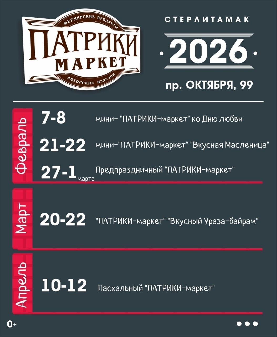 - Предпраздничный “Патрики-маркет” к 8 марта: 27 февр-1 марта,