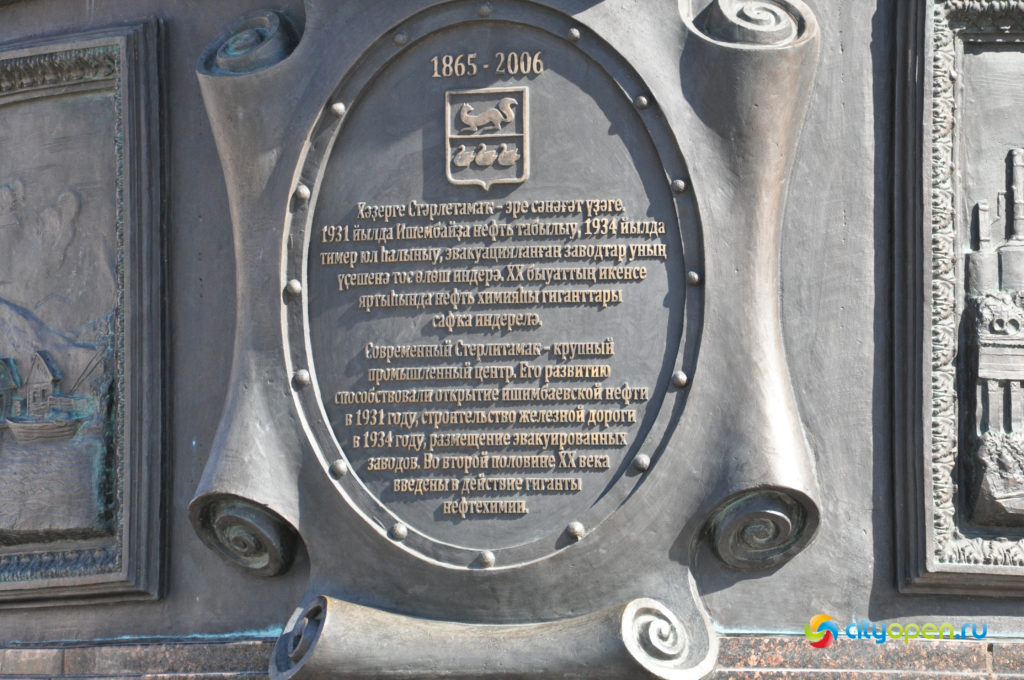 У входа на территорию сквера возвышается стела, также установленная к 250-летнему юбилею Стерлитамака.