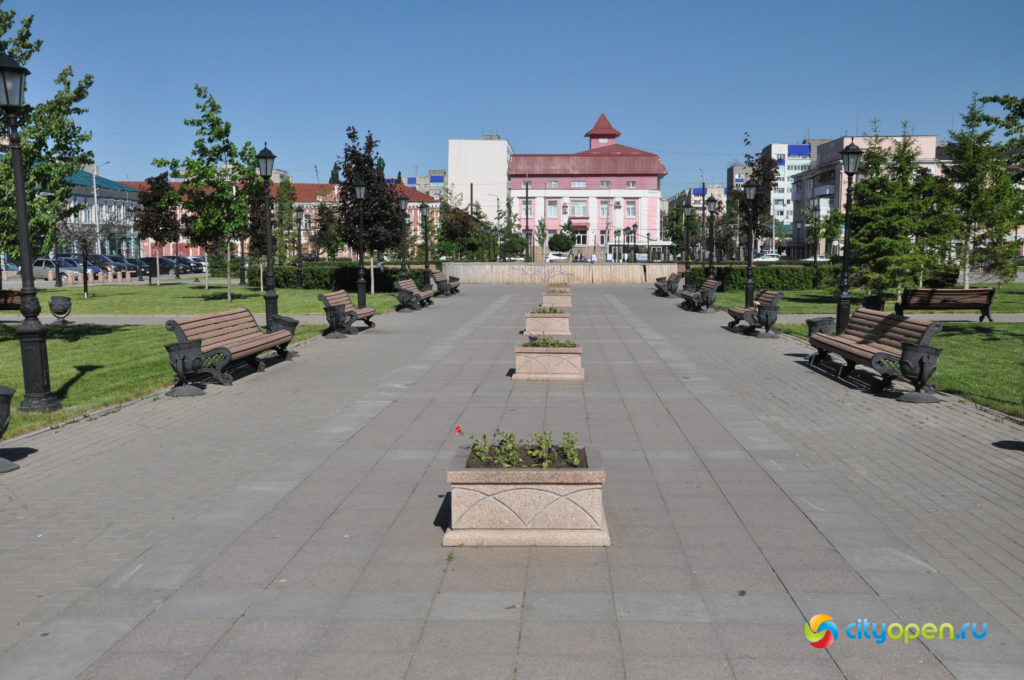 Речь пойдет о сквере в Старом городе, он же – пешеходная зона перед кинотеатром «Салават». Его благоустройство было приурочено к 250-летию Стерлитамака. Сквер очень сильно изменился: исчезли заросли старых деревьев, появились новые удобные скамейки, фонари, брусчатка.