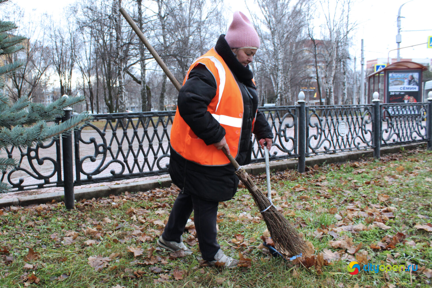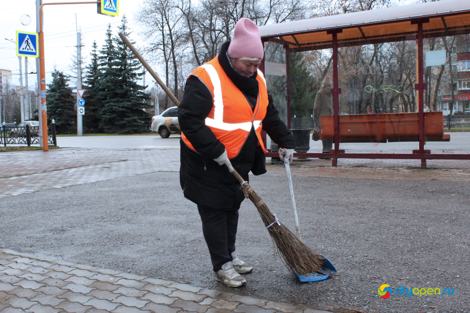– Мы работаем с половины седьмого утра. Где-то в 6:15 мы уже приезжаем на рабочее место, подметаем, убираем остановочный павильон, складываем мусор в мешки. Потом идем по газону, собираем мусор вдоль дороги, на дороге, соблюдая, конечно же, технику безопасности. И так до 10:30. Потом до 13 часов у нас обед. После – мы возвращаемся на рабочее место и уже убираем на поперечных улицах, закрепленных за каждым, и поддерживаем порядок на остановках. Бывают корректировки, конечно.