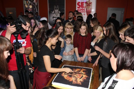 Праздничную программу дополнили выступления Алины Рай, которая по дресс-коду представляла белый Капитоль и черных соек-пересмешниц из театр-студии «Солнышко». А в завершении в зал вынесли десятикилограммовый торт с неизменным символом революции.