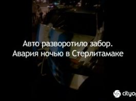 Авто разворотило забор. Авария ночью в Стерлитамаке