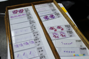 Во время вырезки врач делит часть материала на мелкие фрагменты. Их укладывают в кассеты. Если материал изначально очень мелкий, его подкрашивают. Каждая кассета имеет свой уникальный номер, соответствующий конкретному пациенту. Этот же номер отмечен на баночке с материалом, он же будет указываться потом и на стеклышках с препаратами. О них чуть позже.