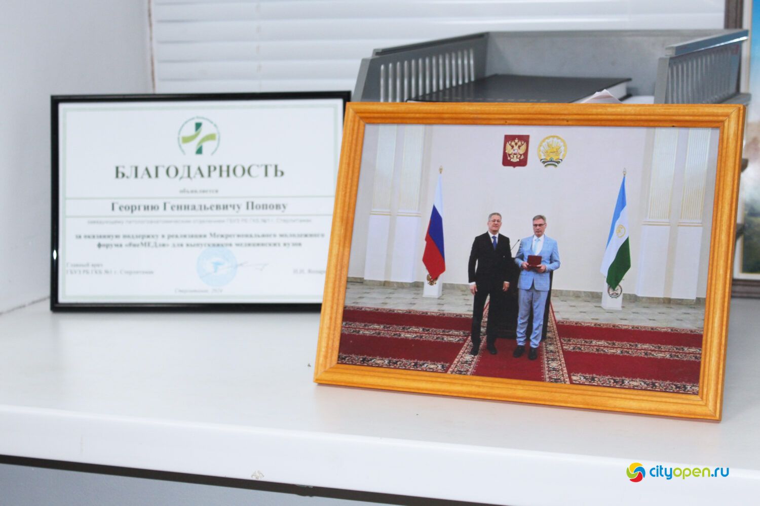 Далее нам удалось встретиться с юным врачом-ординатором первого года Фроловым Михаилом Сергеевичем, который сейчас пока еще продолжает обучение в Башкирском медицинском университете по целевому направлению, то есть после учебы он будет официально работать в патологоанатомическом отделении ГКБ №1 Стерлитамака. Мы застали Михаила как раз за просмотром лекции и немного его отвлекли.
