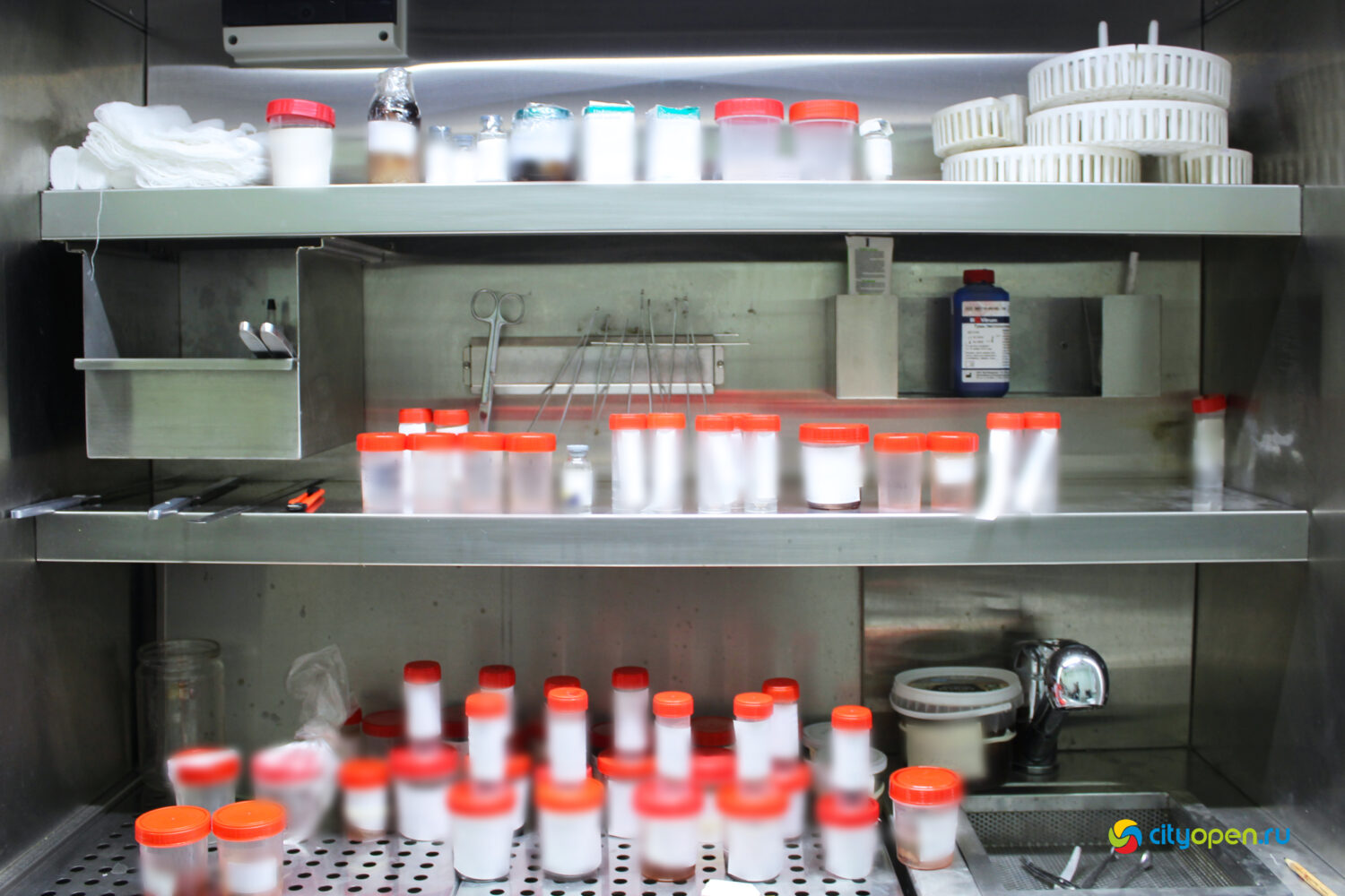 В отдельном помещении расположен, так называемый, «влажный» архив. Здесь фрагменты тканей, органов и не только хранятся в формалине около года, иногда меньше или больше.