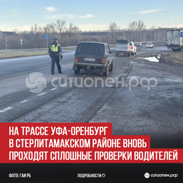 На 113 километре трассы Уфа-Оренбург на территории Стерлитамакского района с утра 11 апреля вновь проходят сплошные проверки водителей. Об этом сообщает глава Госавтоинспекции Башкирии Владимир Севастьянов.
