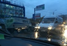 Причиной пробки на улице Худайбердина в районе Дома Быта стала авария легкового автомобиля с полицейской "буханкой".