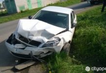 В результате аварии красный автомобиль китайской марки "Лифан" вынесло на пешеходную дорожку,...