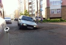 Автомобиль провалился в дорожную яму на одной из улиц Стерлитамака