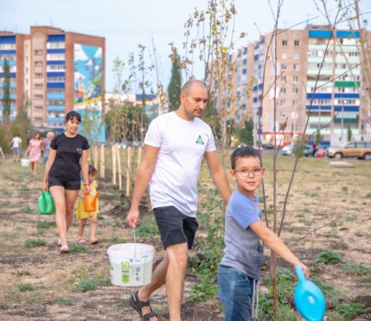 Сотрудники нефтехимической группы “ТАУ НЕФТЕХИМ” организовали полив деревьев на новой аллее Стерлитамака