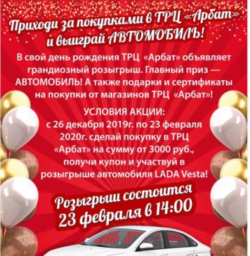 Приходи за покупками в ТРЦ «Арбат» и выиграй автомобиль!