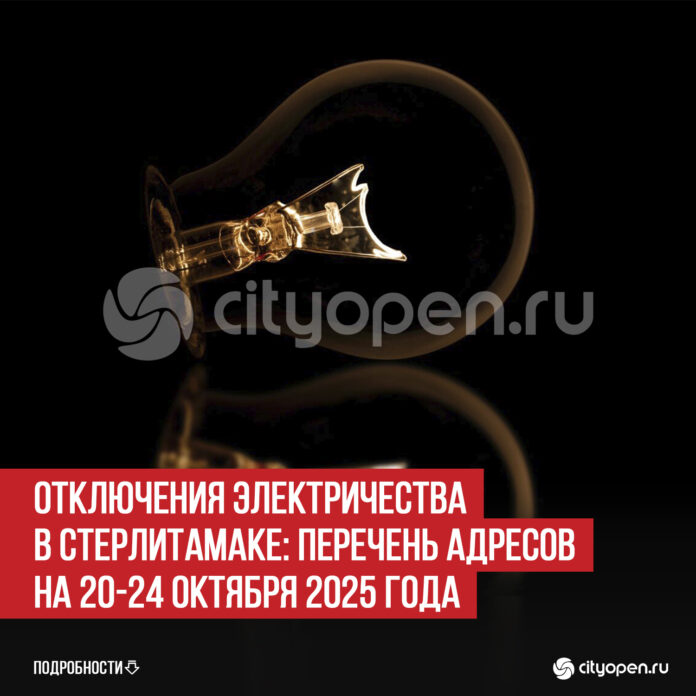В Стерлитамаке в период с 20 по 24 октября планируется несколько отключений электроэнергии. По сообщению ООО «АСТ», временные неудобства связаны с различными ремонтными работами. Ниже прикрепляем график и перечень адресов, которых коснется отключение: