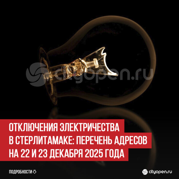 В Стерлитамаке 22 и 23 декабря планируется несколько отключений электроэнергии. По сообщению ООО «АСТ», на будущей неделе временные неудобства связаны ремонтными работами. Ниже прикрепляем график и перечень адресов, которых коснется отключение: