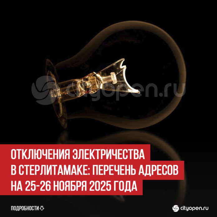В Стерлитамаке в период 25 и 26 ноября планируется несколько отключений электроэнергии. По сообщению ООО «АСТ», на будущей неделе временные неудобства связаны ремонтными работами. Ниже прикрепляем график и перечень адресов, которых коснется отключение: