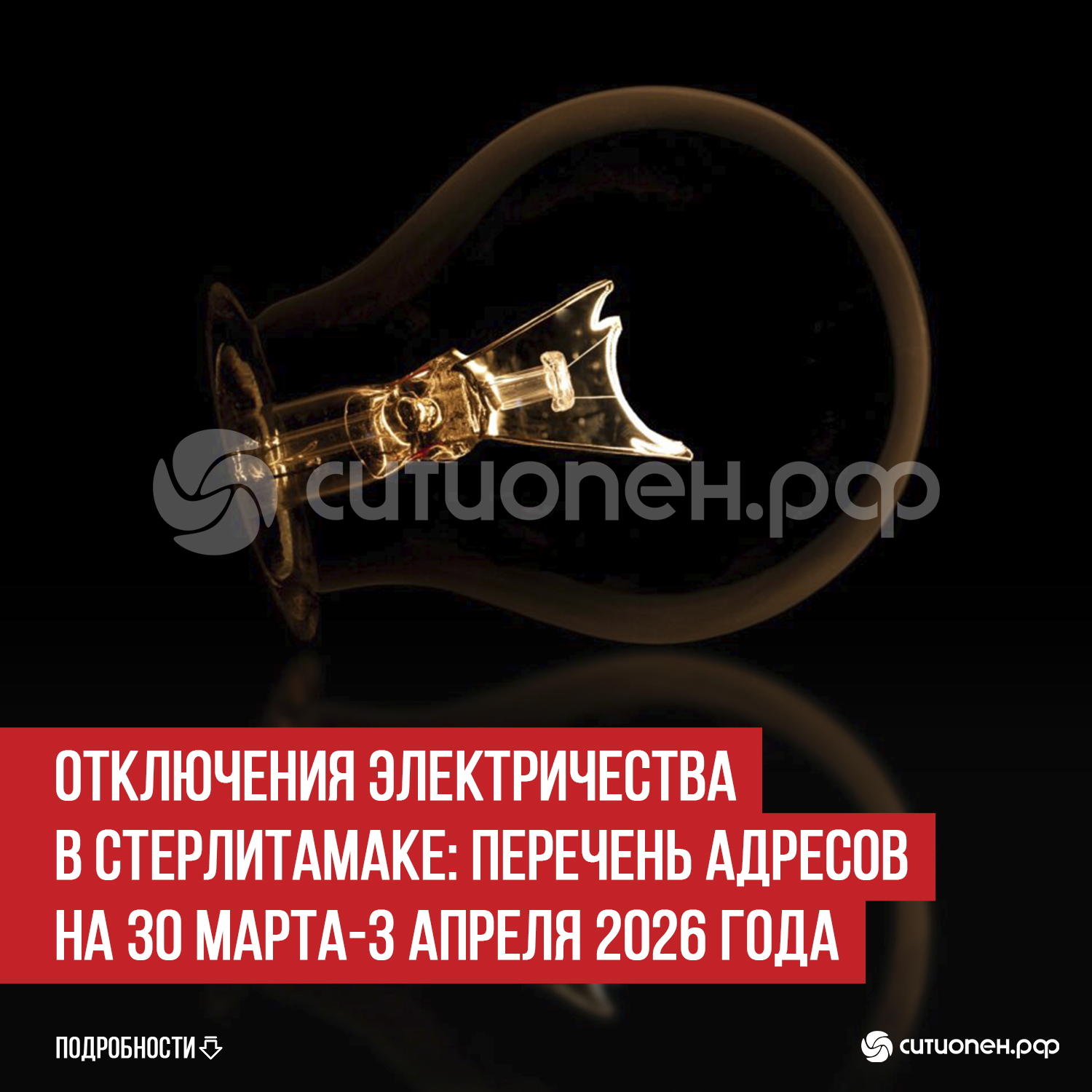 Отключения электричества в Стерлитамаке: перечень адресов на 30 марта-3 апреля 2026 года