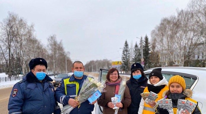 Сотрудники ГИБДД Стерлитамака вышли патрулировать улицы с букетами цветов. Особое внимание инспекторы уделяли автоледи.