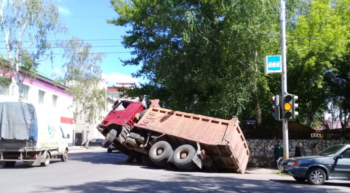 В Стерлитамаке на перекрестке улиц Мира и Сакко и Ванцетти грузовик провалился в канаву.