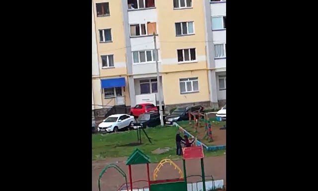 В сети опубликовали видео, на котором мужчина переворачивает навес от песочницы. Как рассказывают очевидцы, до этого он пытается сломать детские горки и качели, а...