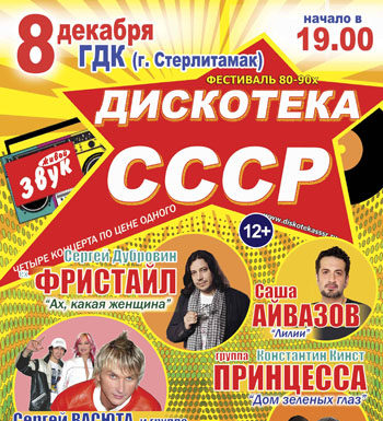 В начале зимы 8 декабря в 19.00 в ГДК г. Стерлитамак, впервые состоится зажигательная концертно-дискотечная программа "ДИСКОТЕКА СССР". Да, именно та самая ДИСКОТЕКА, которая...