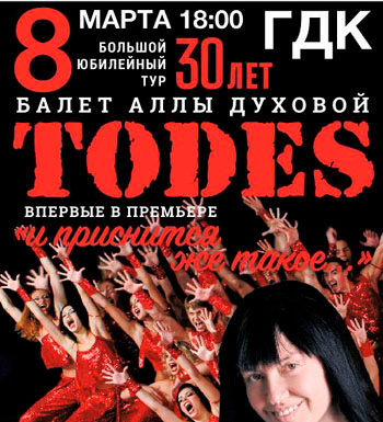 Театр танца Аллы Духовой TODES приглашает Вас на премьеру! Удивительно яркий и одновременно нежный, страстный, энергичный, иногда забавный и ироничный, но в любом случае...