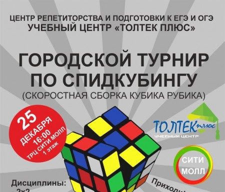 В Стерлитамаке 25 декабря состоится городской турнир по спидкубингу! Спидкубинг - скоростная сборка кубика Рубика. Определение победителя: квалификация по лучшему результату из 2 попыток. Перед...