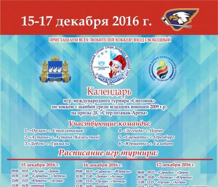 Хоккейный Клуб "Орлан" приглашает гостей и жителей города на Международный турнир среди детей 2009 г.р.Турнир пройдёт на льду ДС "Стерлитамак-Арена". Вход свободный!