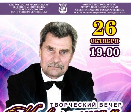 26 октября в 19.00 состоится творческий вечер главного дирижера оркестра русских народных инструментов заслуженного деятеля искусств РФ, заслуженного работника культуры РБ Владимира Турченко.