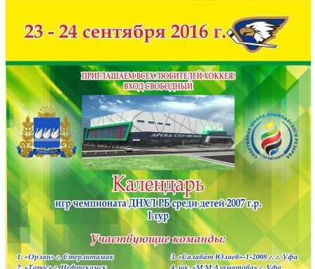 Приглашаем всех любителей хоккея на I тур Чемпионата Детской независимой хоккейной лиги РБ среди юношей 2007 г.р.