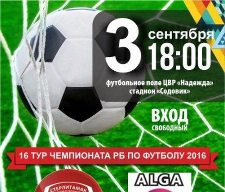 3 сентября на поле ЦВР "Надежда" спорткомплекса "Содовик" состоится матч 16 тура Чемпионата РБ по футболу 2016 г.