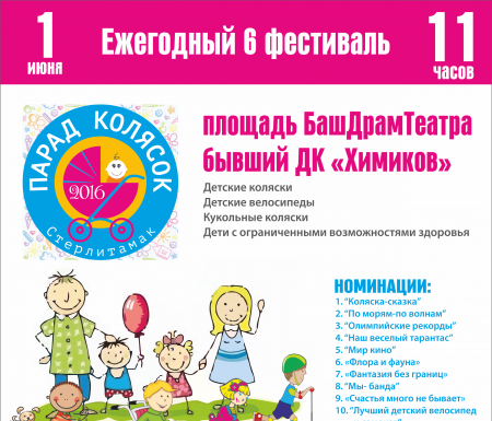 В Стерлитамаке в День защиты детей состоится ставший уже доброй традицией семейный праздник «ПАРАД КОЛЯСОК» . Мероприятие пройдет 1 июня в 11 часов на...