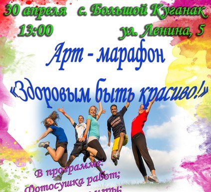 30 апреля по инициативе Молодежного Совета при Совете муниципального района Стерлитамакский район в селе Большой Куганак пройдет арт-марафон «Здоровым быть красиво!».