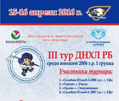 Хоккейный клуб «Орлан» приглашает гостей и жителей города Стерлитамак посетить матчи III тура Чемпионата ДНХЛ РБ среди юношей 2006 г.р.
