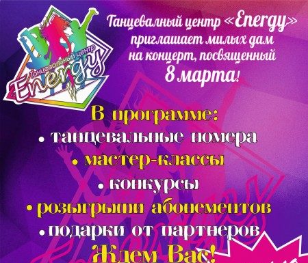 В программе: Мастер-классы, танцевальные номера, розыгрыши абонементов, море подарков и много всего интересного!