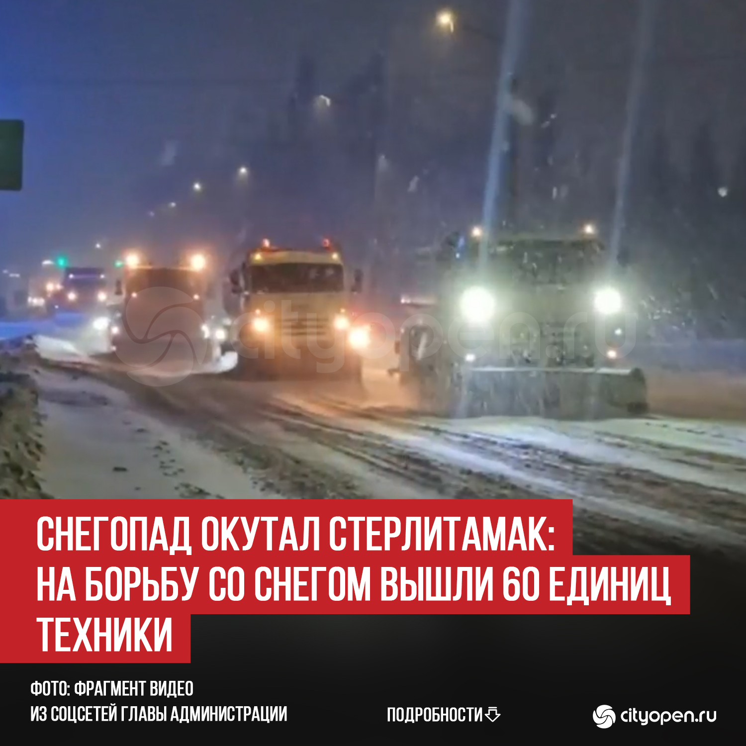В Стерлитамаке снег засыпает дороги и тротуары. По словам главы городской администрации Эмиля Шаймарданова, ночью и утром на борьбу со снегом от РСУ ДОР и УРБ вышли 60 единиц техники и 90 рабочих. Также 11 единиц техники и 399 дворников работают от управляющих компаний. Было использовано порядка 260 тонн противогололедных материалов.