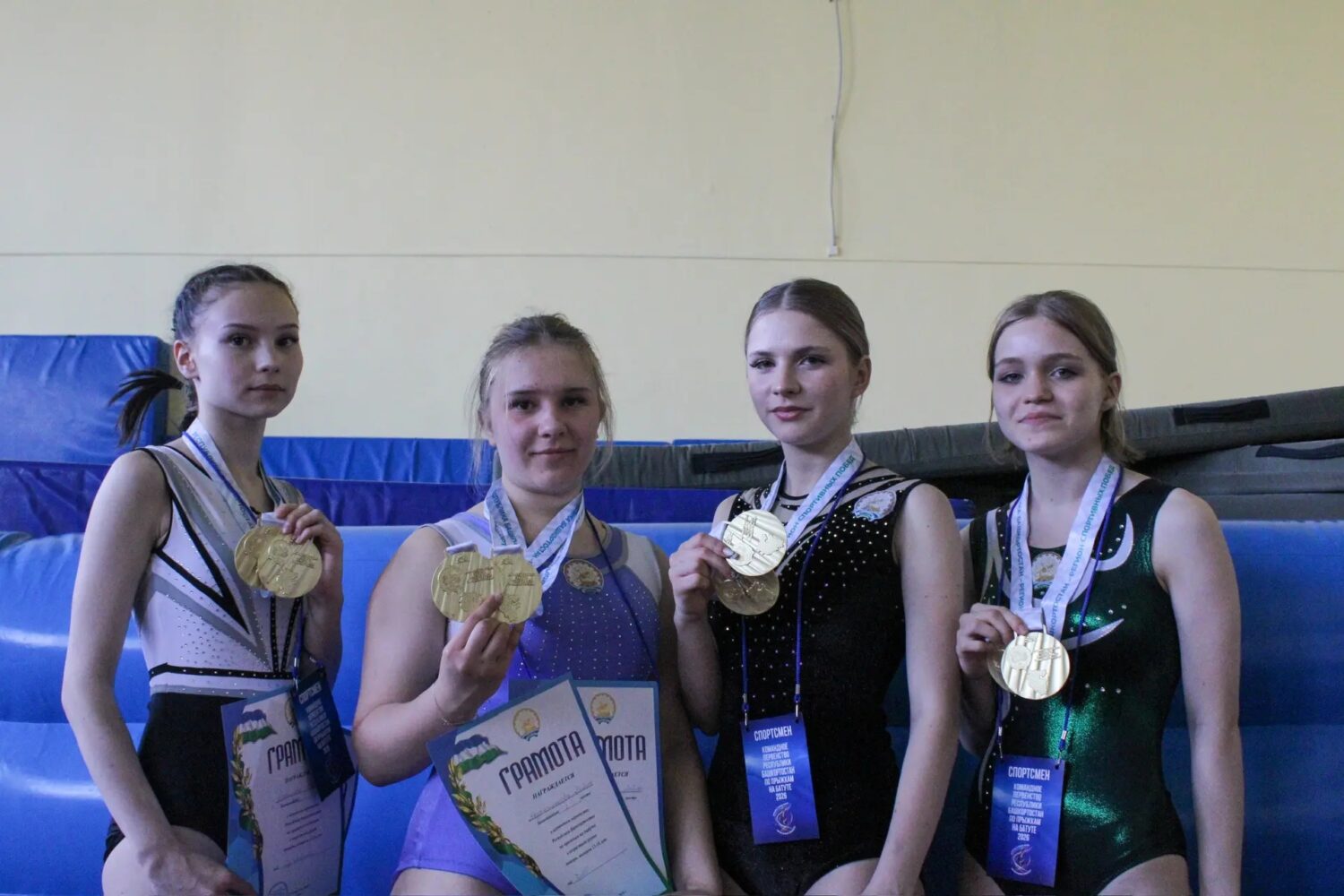 По информации СШОР, особенно отличились девушки. Спиридонова Злата, Абдрахманова Лейла, Шарипова Риана и Селюч Милослава стали обладательницами золотых медалей, достойно выступив в двух дисциплинах: прыжки на батуте и на двойной мини-трамп.