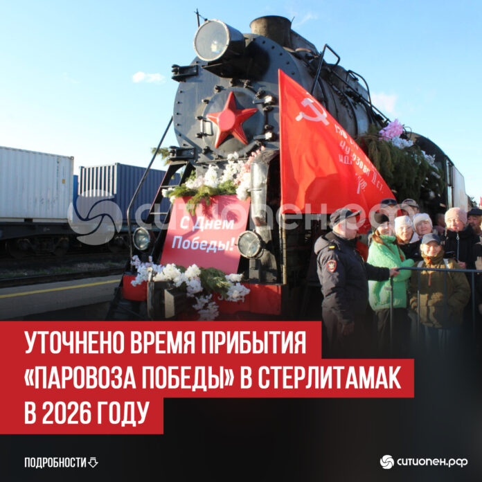По сообщению Куйбышевской железной дороги, «Паровоз Победы» прибудет в Стерлитамак в 18:50 и пробудет на ж/д вокзале до 21:10. Сопровождать состав будут профессиональные реконструкторы, для посетителей выступят творческие коллективы.