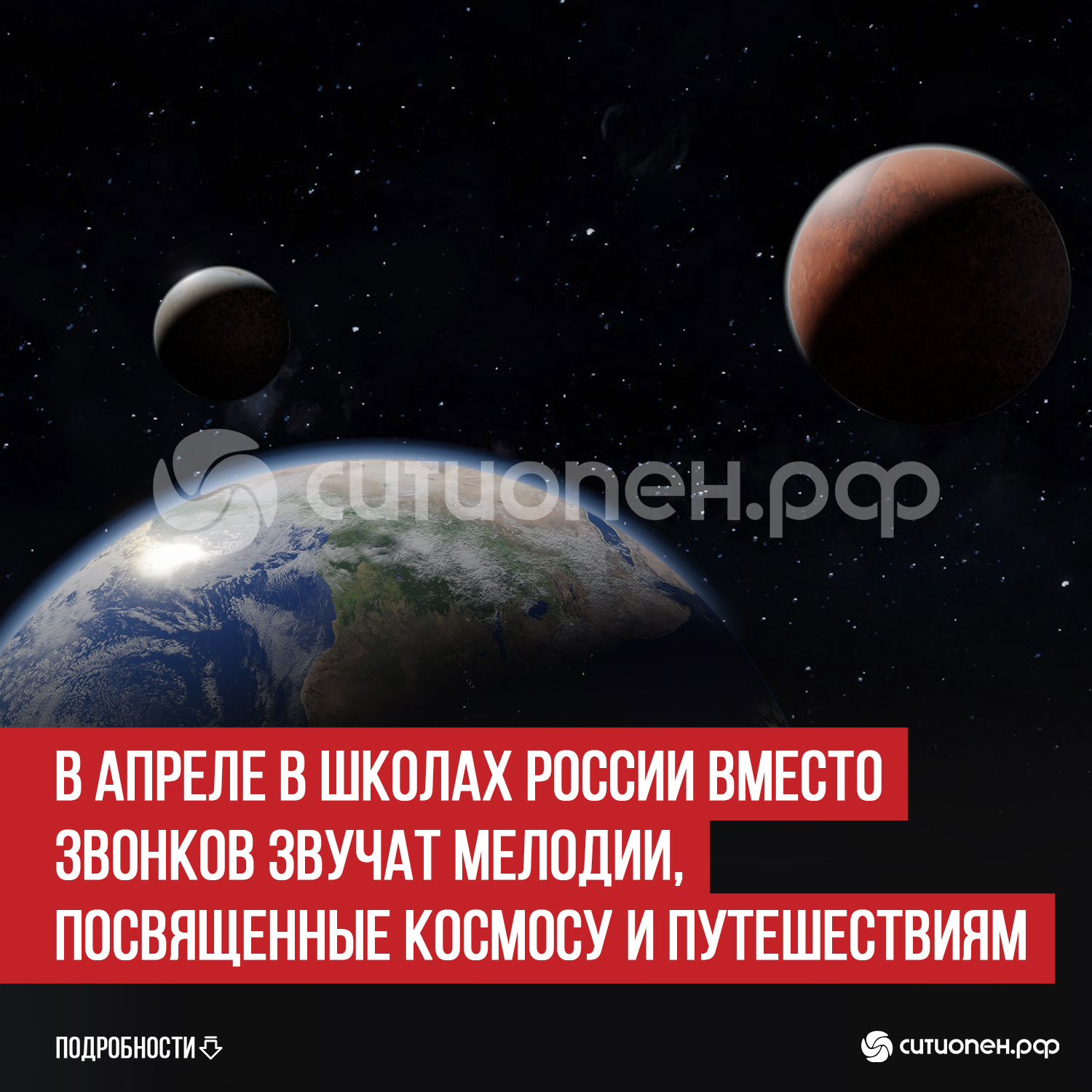 В школах по всей России в апреле вместо стандартных звонков звучат мелодии, посвященные Дню космонавтики. Напомним, замена звонков проводится в рамках Всероссийского проекта «Мелодии вместо звонков», организатором которого является Минпросвещения РФ. Каждый месяц мелодии посвящены значимым датам, праздникам.