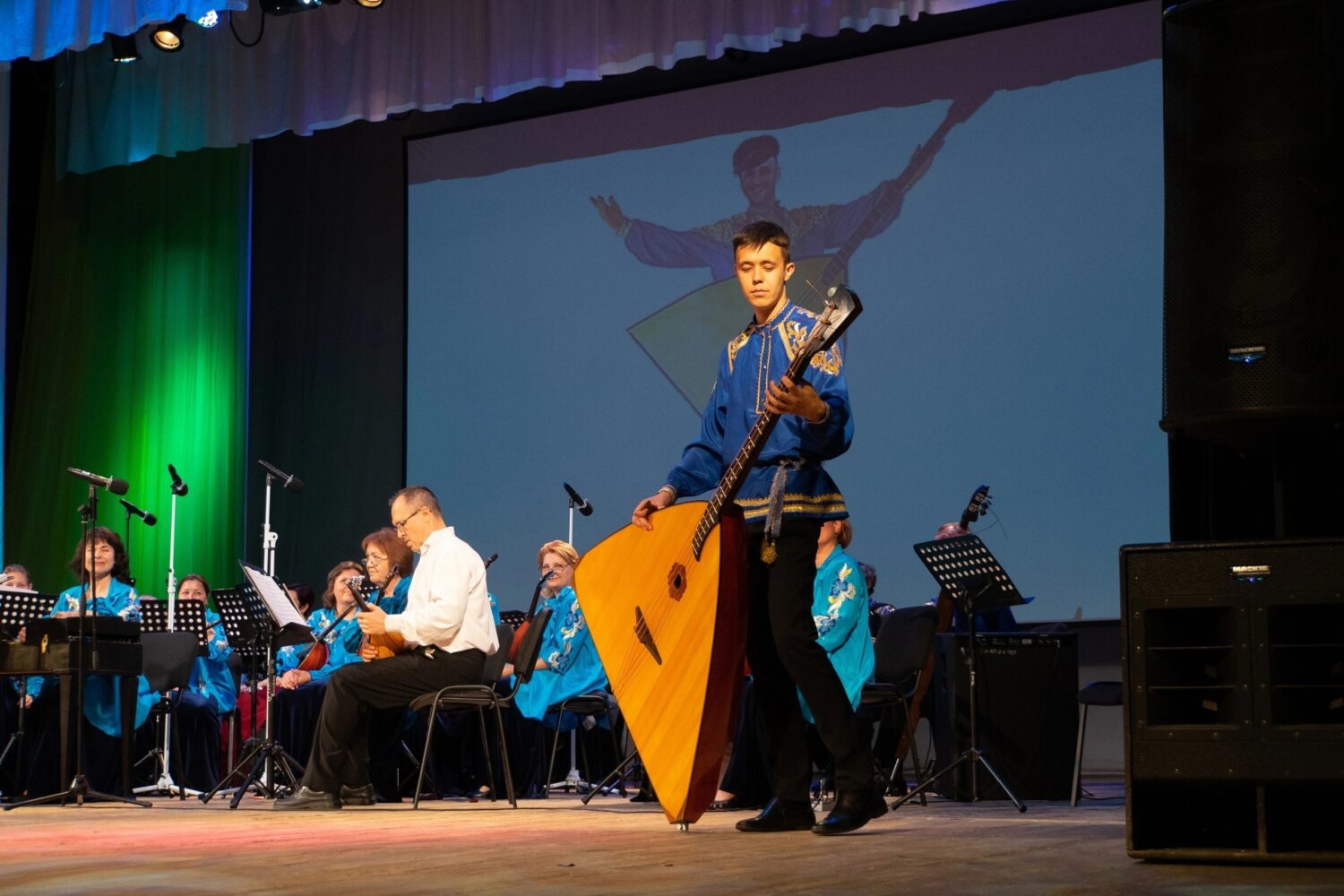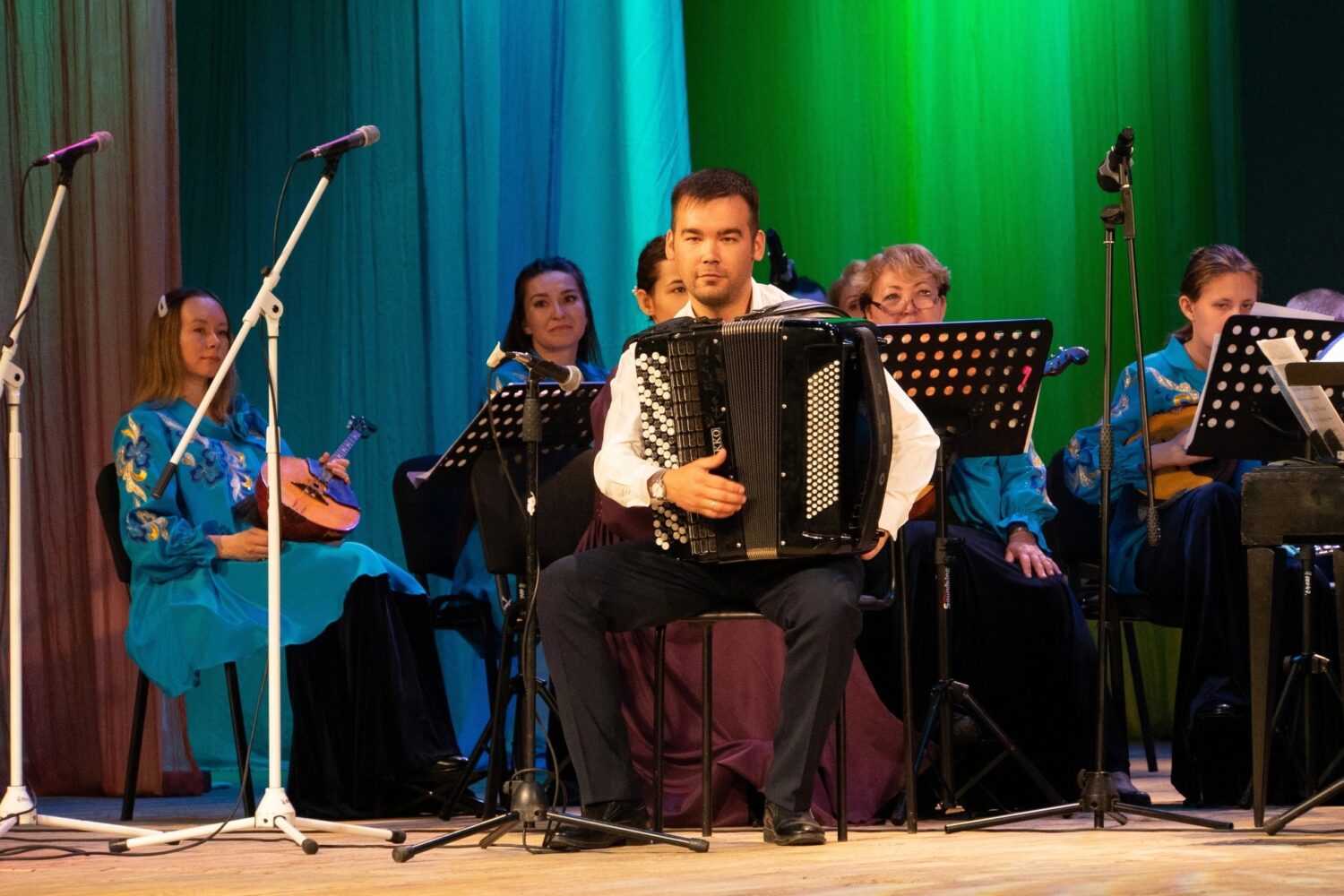 В программе прозвучали балалайка, домра, баян, гусли, группа духовых и ударных инструментов.