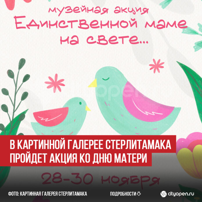 В картинной галерее Стерлитамака по ул. Коммунистической, 84 с 28 по 30 ноября будет проходить музейная акция «Единственной маме на свете», посвященная Дню матери. Праздник отмечается в последнее воскресенье ноября.