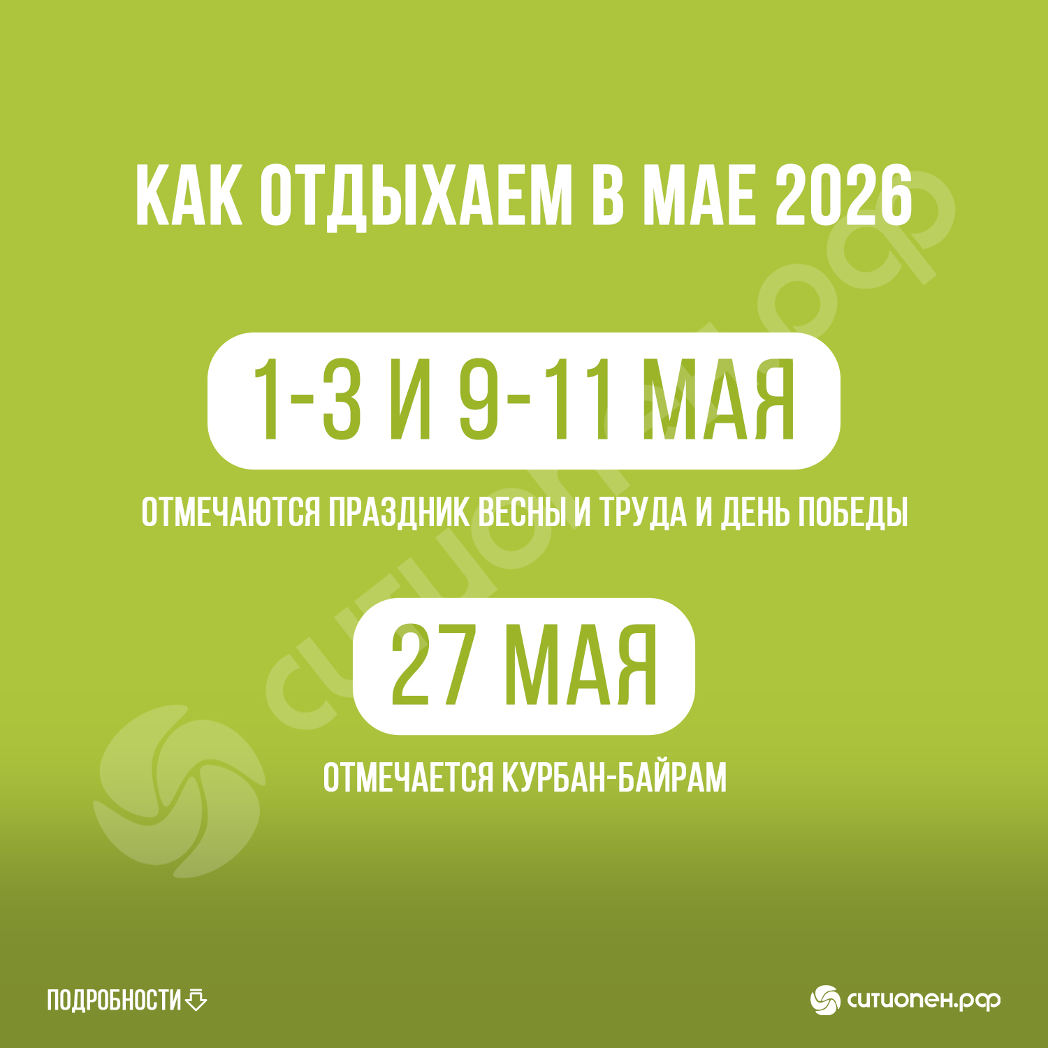 В Министерстве семьи, труда и соцзащиты населения Башкирии напомнили, что выходными днями в мае будут: