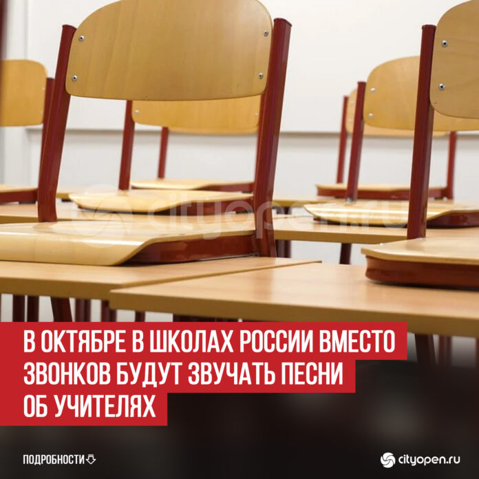 В октябре в школах России в рамках проекта «Мелодии вместо звонков» будут звучать композиции современных авторов. Для этого месяца выбрана тематика Дня учителя и осенних музыкальных дат, сообщает Минпросвещения РФ.