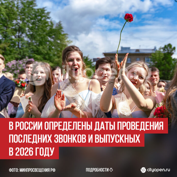 В России утвердили единые даты проведения в 2026 году Последних звонков и выпускных. По информации Минпросвещения РФ, Последние звонки в школах планируется провести 26 мая, выпускные – 27 июня. Рекомендации направлены в субъекты страны.