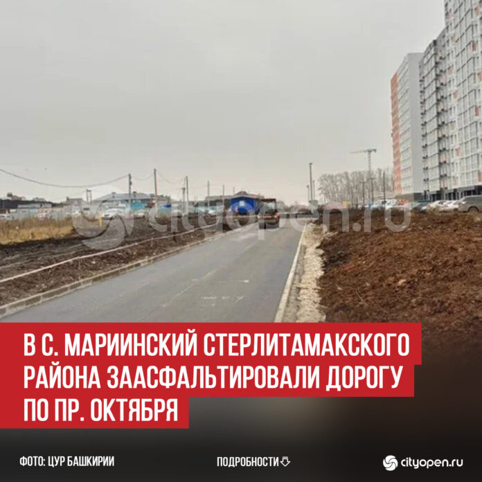 В Стерлитамакском районе на территории с. Мариинский заасфальтировали дорогу по пр. Октября, 99. Об этом сообщает ЦУР Башкирии.