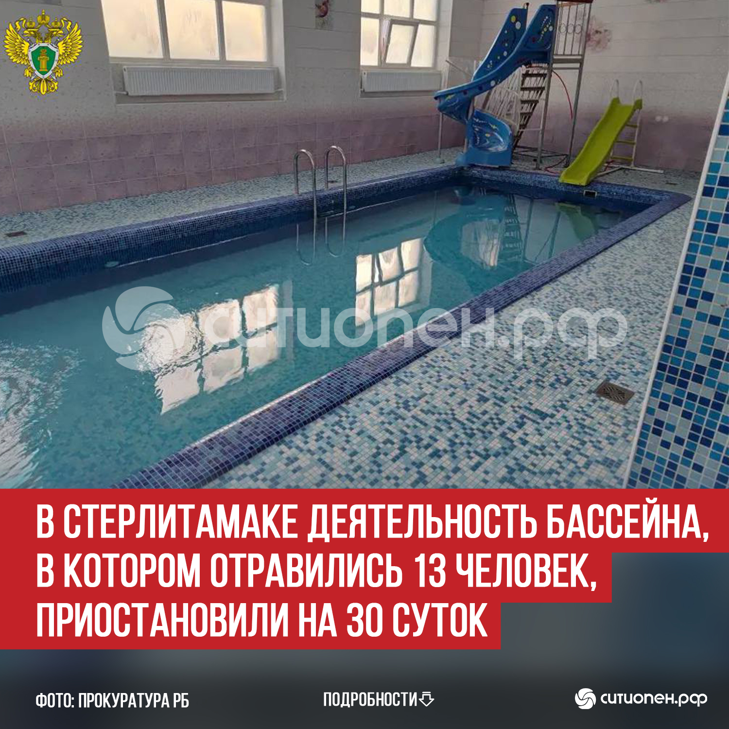 В Городском суде Стерлитамака приняли решение приостановить деятельность бассейна в банном комплексе, в котором 8 марта отравились парами хлора 13 человек, в том числе 9 детей. Напомним, ранее сообщалось о возбуждении уголовного дела, а также о проведении проверки со стороны прокуратуры.
