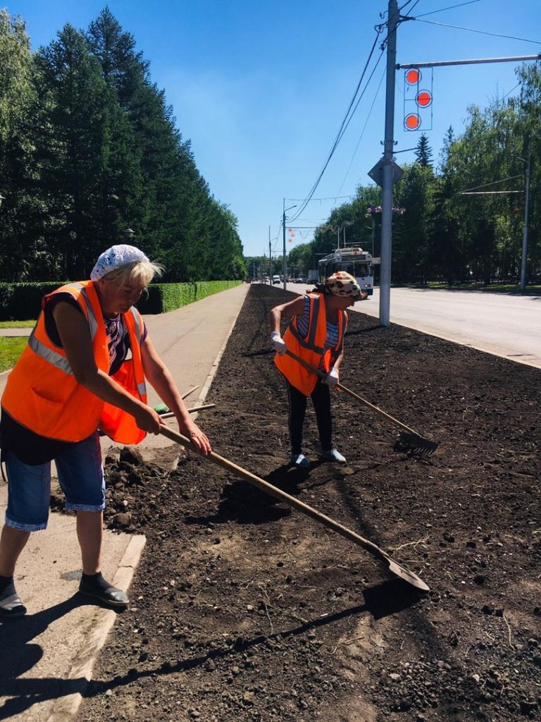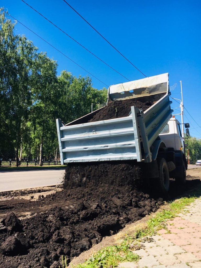 «Обновление газонов включает в себя снятие уже истощённого слоя земли, завоз и распределение нового слоя чернозёма и затем засев газонной травой», – сообщили в управлении ЖКХ.